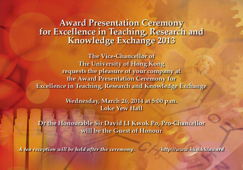 Award Presentation Ceremony for Excellence in Teaching, Research and Knowledge Exchange 2013, HKU – March 26 2014