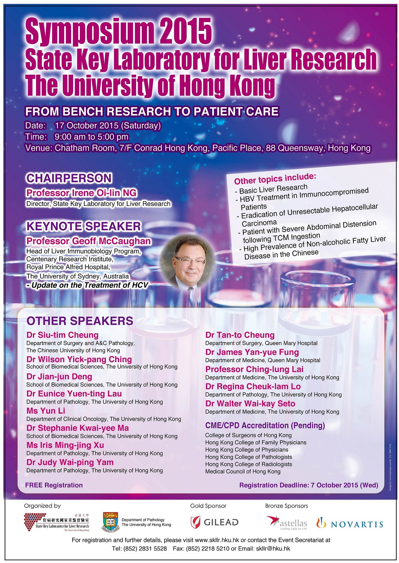 SKLLR 2015 October 20, 2015October 28, 2015sma lab The annual State Key Laboratory for Liver Research Symposium 2015 was held at Conrad Hotel in Hong Kong on 17 October 2015.