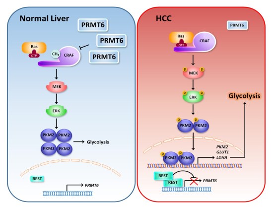 Wong TL, Ng KY, Tan KV, Chan LH, Zhou L, Che N, Hoo RL, Lee TK, Richard S, Lo CM, Man K, Khong PL, Ma S. CRAF methylation by PRMT6 regulates aerobic glycolysis-driven hepatocarcinogenesis via ERK-dependent PKM2 nuclear relocalization and activation. Hepatology 2019; Epub ahead of print.