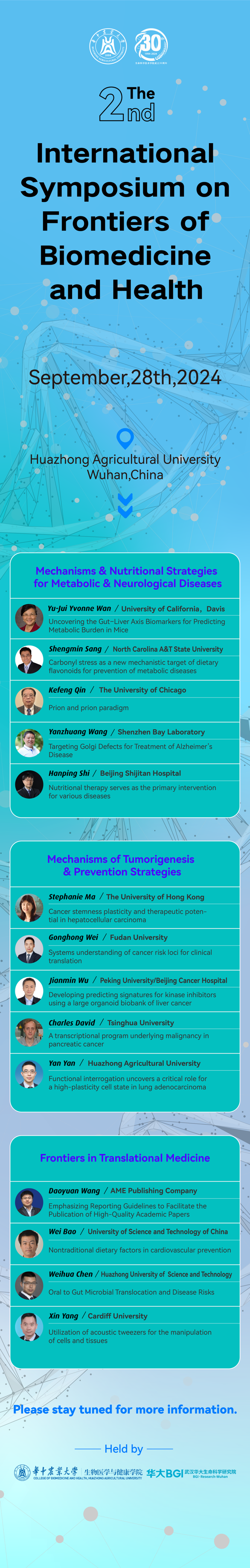 Thank you Yan Yan of Huazhong Agricultural University for the invitation to speak at this international symposium. Saturday afternoon well spent in an engaging session on mechanisms of tumorigenesis and prevention strategies.