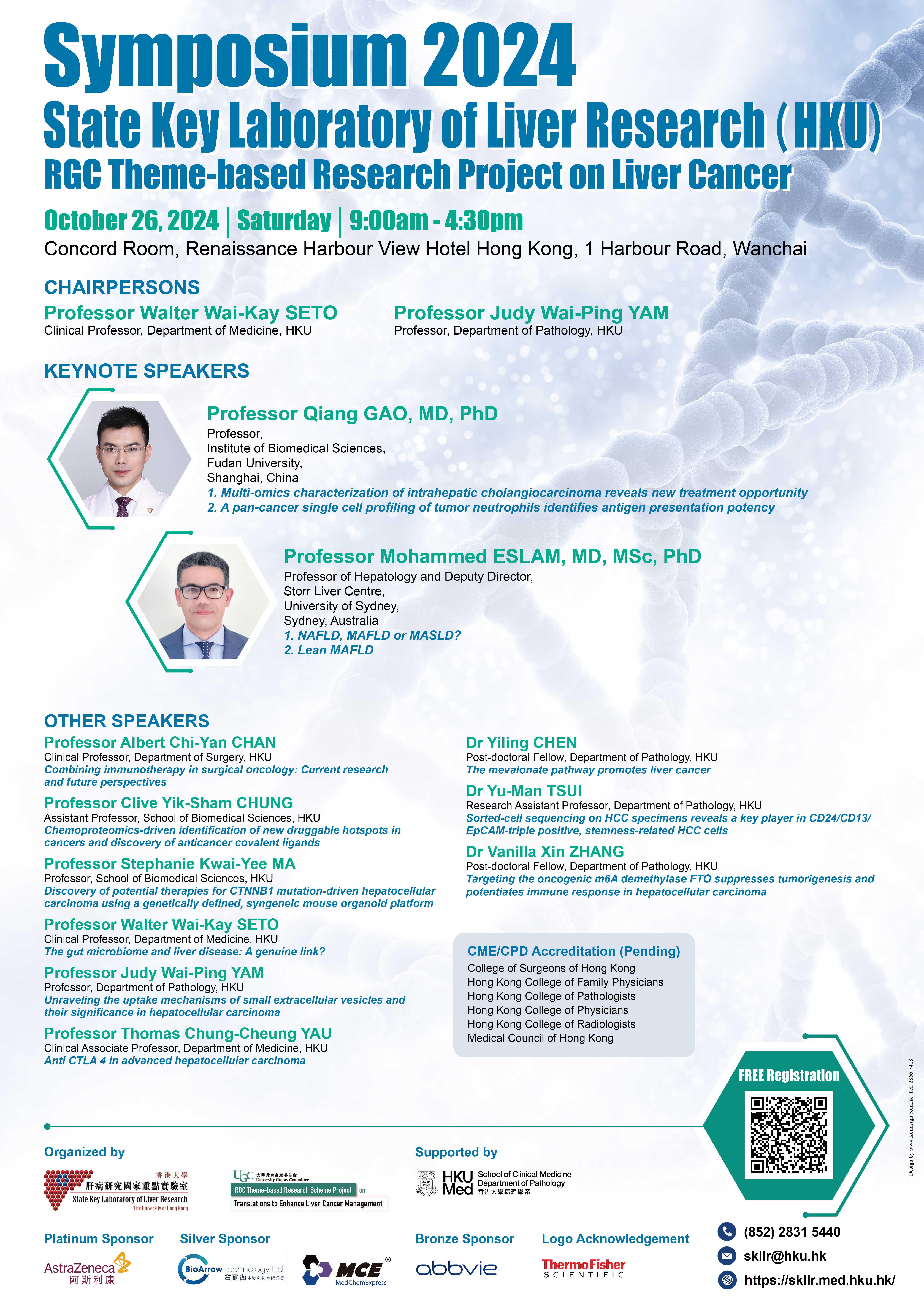 Stephanie shared the team’s latest findings on the discovery of potential therapies for CTNNB1 mutation-driven HCC using a genetically defined, syngeneic mouse organoid platform at this year’s SKLLR Symposium, held on October 16th, 2024, at Renaissance Harbor View Hotel HK.