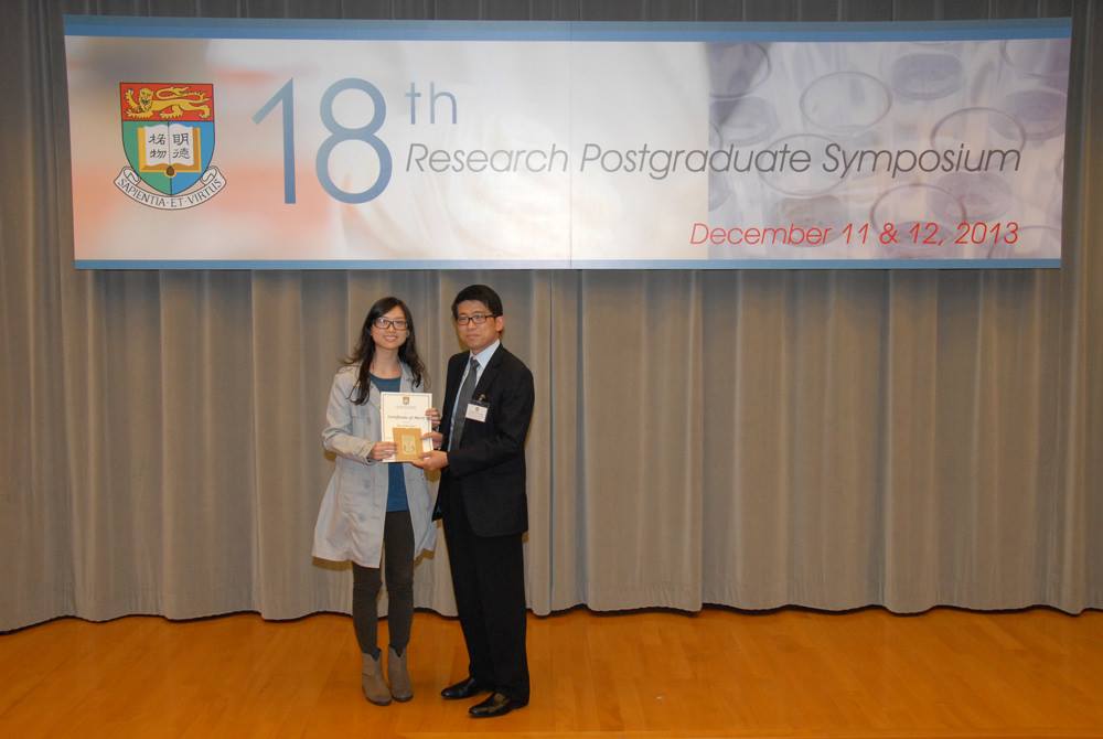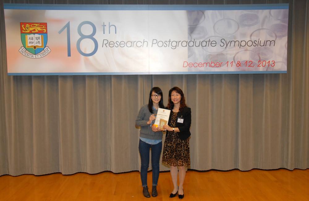 Congratulations to Carol and Stella! Carol is the 1st Runner Up in the Plenary Session for the Best Oral Presentation Award and Stella received one of the Best Poster Presentation Awards at the 18th Research Postgraduate Symposium of the LKS Faculty of Medicine, HKU. December 11-12, 2013. Keep up the good work!